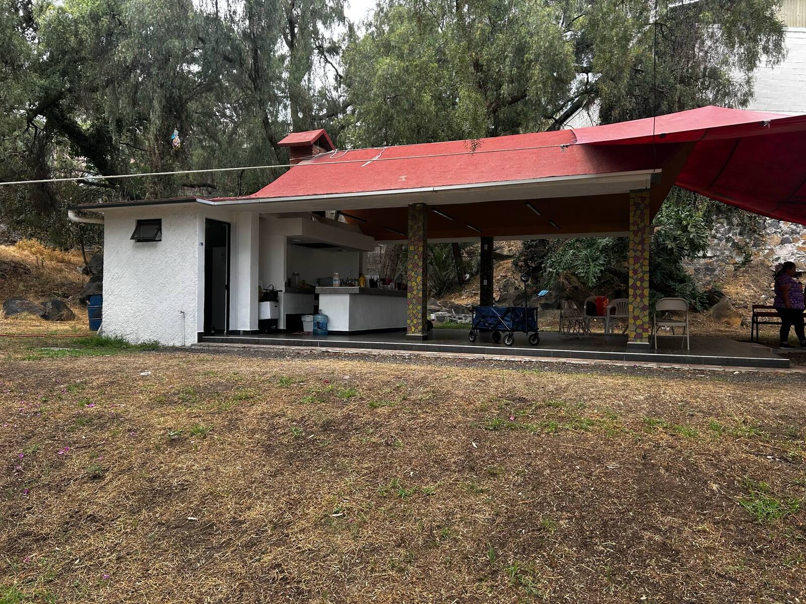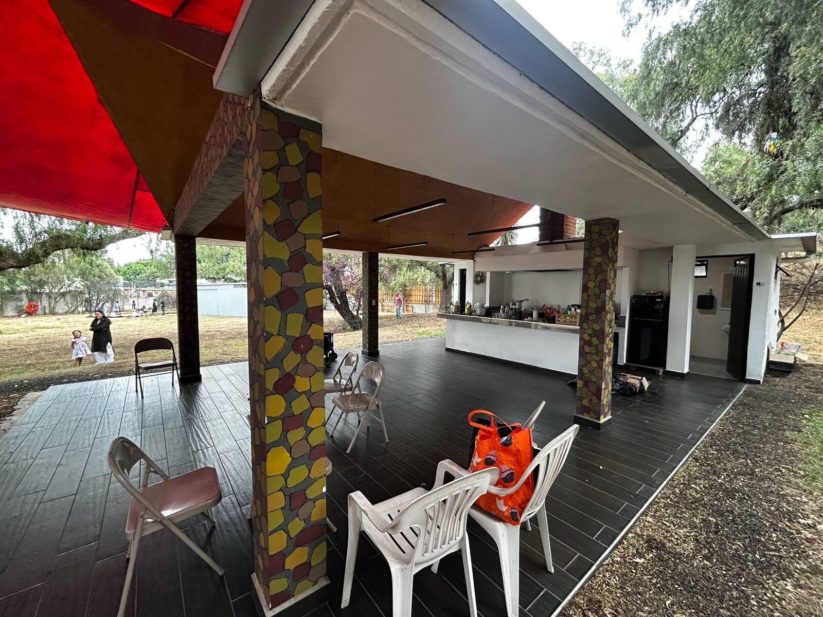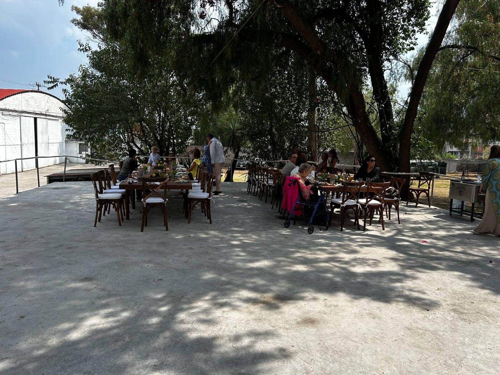 Contamos con un inmenso jardín que se puede ocupar para múltiples cosas, una palapa grande, baños de mujeres, baños de hombres, pista de patinaje, cancha de basquetbol, estacionamiento, columpios y mucho más